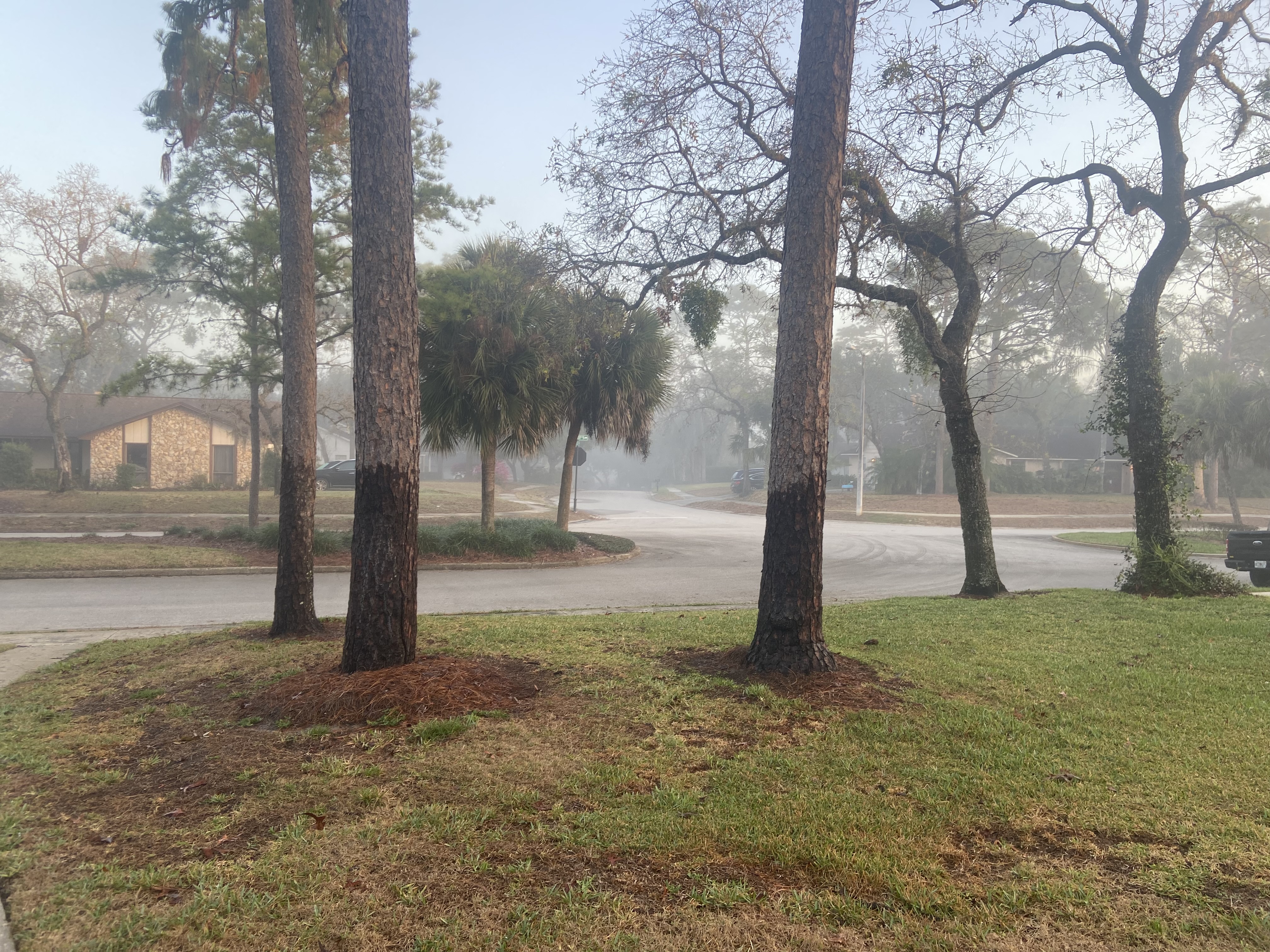 While we were sleeping, a heavy fog settled in over our neighborhood. Looking out my front door, I could only see part way down the street ahead of us.