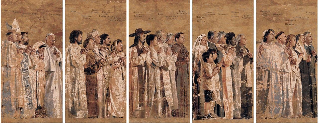 The walls of the sanctuary in The Cathedral of Our Lady and the Angels in Los Angeles are lined with tapestries that portray saints from all races, times and places. (See Rev. 7:9.) Entering that space we walk with them and they walk with us in “sure and certain hope of resurrection.”