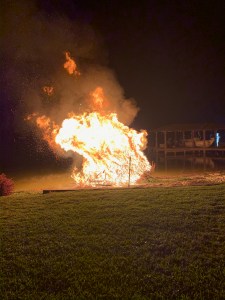 Some weeks after Christmas, when the tree had been dried out by the Florida sun, they would drag it down beside the lake and set it on fire. One year he collected trees from his grandparents, neighbors and friends. It created such a huge blaze that people on the other side of the lake called the fire department who showed up with sirens blaring!