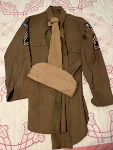 My brother honored the members of “The Greatest Generation” when he attempted to wear Dad’s WWII uniform to a Halloween party. But he said he had a problem.